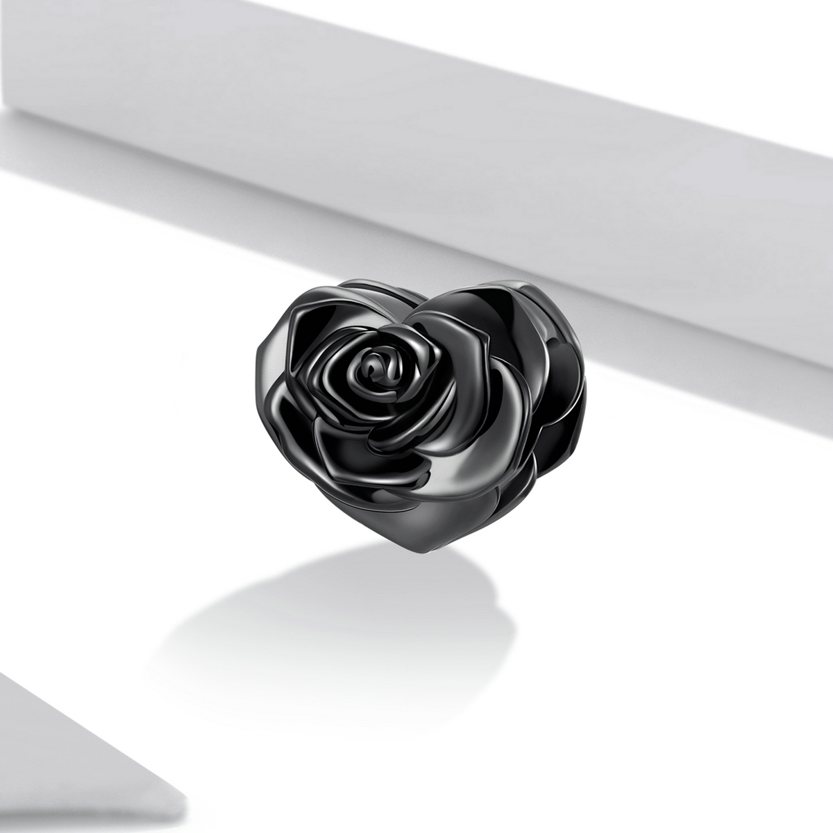 Charm Καρδιά-Τριαντάφυλλο σε Μαύρη Απόχρωση από Ασήμι 925