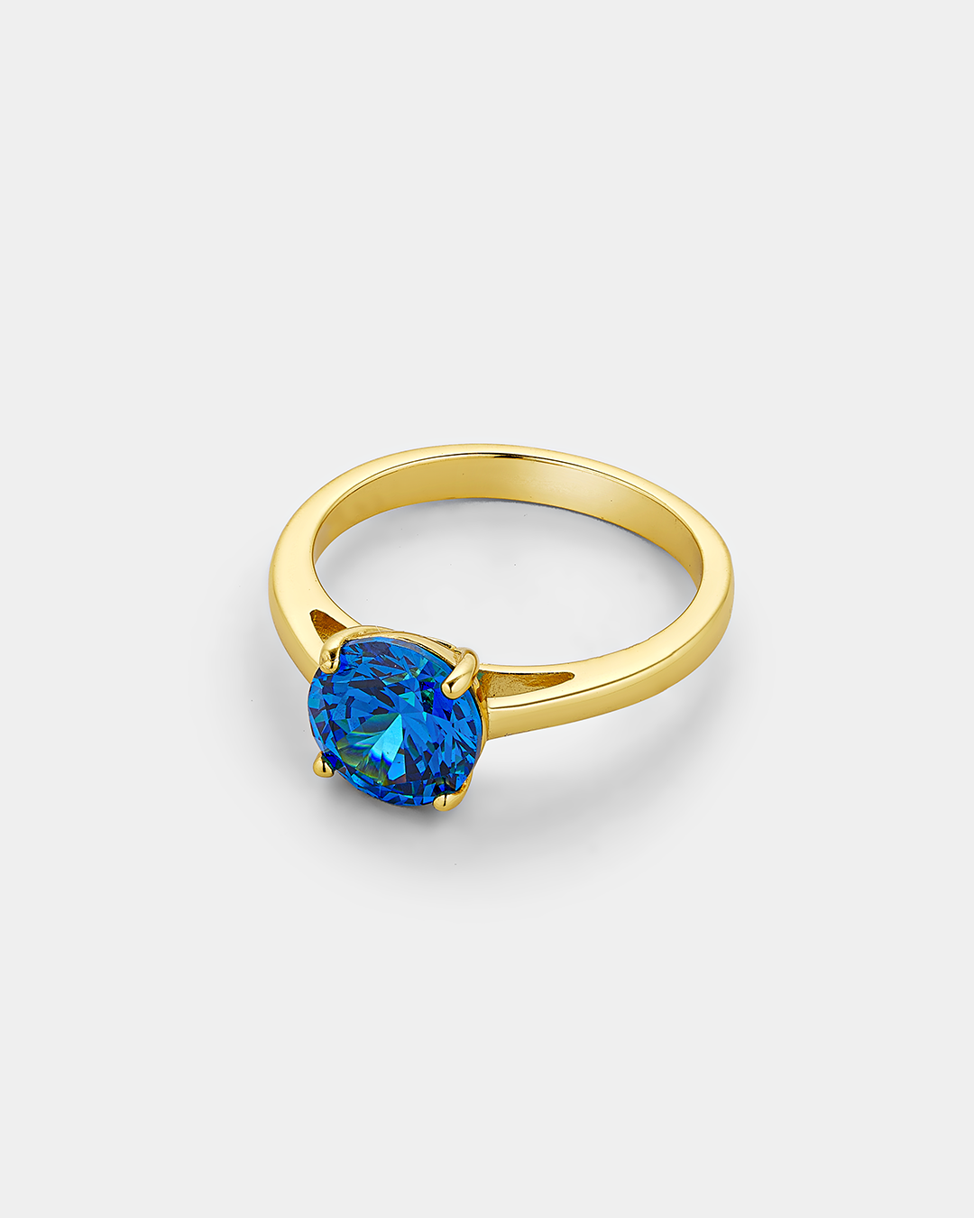 Ένα διαχρονικό δαχτυλίδι που μαγνητίζει το βλέμμα με την απόλυτη λάμψη του. Η κλασική χρυσή γάμπα φιλοξενεί μια μεγαλοπρεπή μπλε πέτρα σε στρογγυλή κοπή, η οποία αναδεικνύεται μέσα από το δέσιμο. Η βαθιά απόχρωση του λίθου σε συνδυασμό με την καθαρότητα των εδρών του δημιουργεί αντανακλάσεις που θυμίζουν το απέραντο γαλάζιο της θάλασσας, καθιστώντας το μια κομψή και δυναμική επιλογή για κάθε περίσταση.