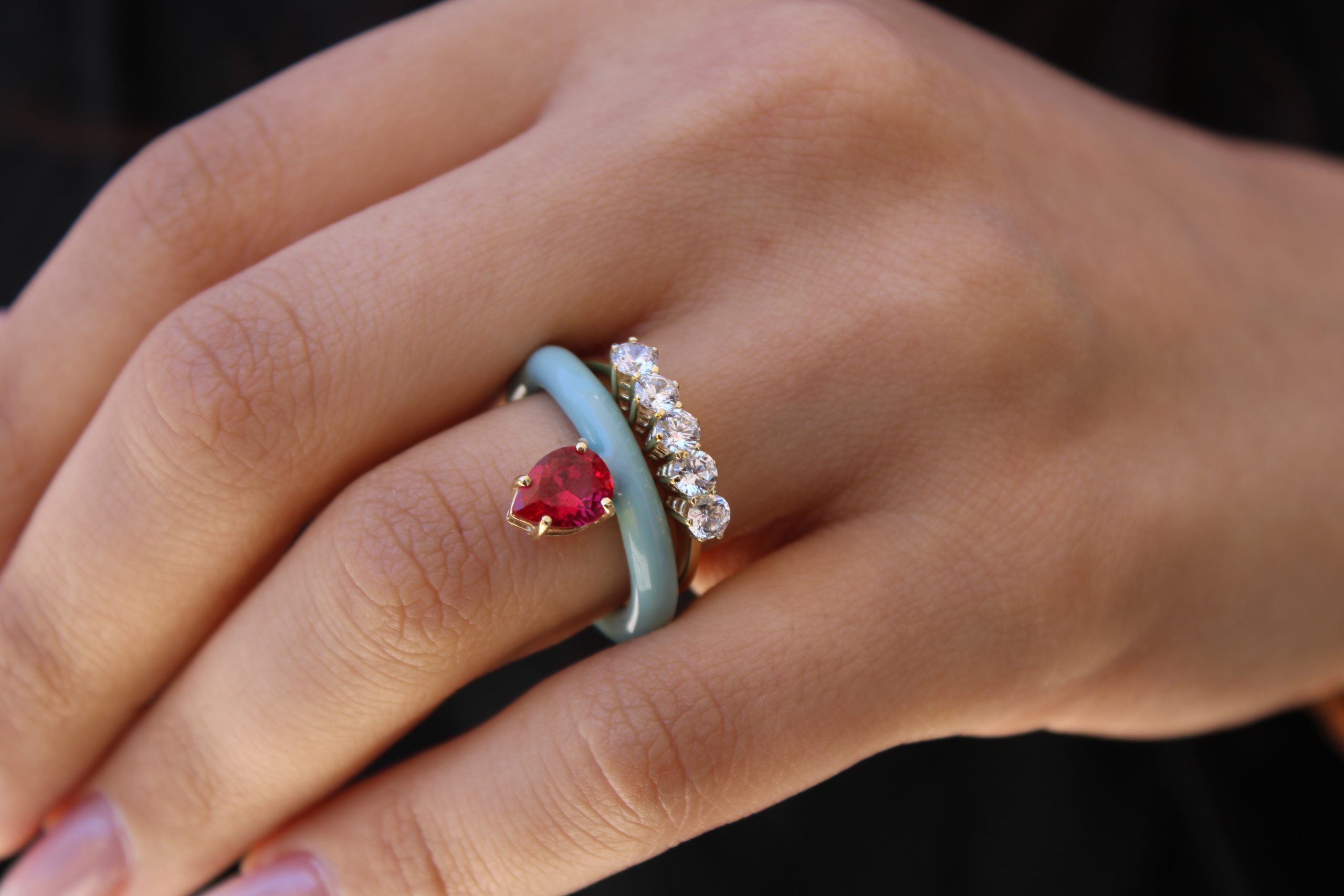64 €Δαχτυλίδι Paspartú με Κόκκινο Quartz, Σμάλτο & Χρυσό 14Κ