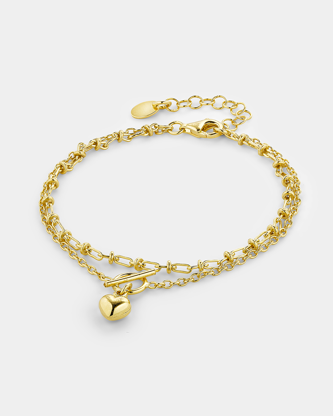 Διπλό Χρυσό Βραχιόλι με Κρίκους και Κρεμαστή Καρδιά