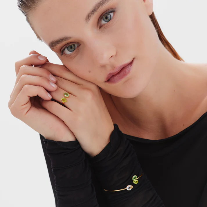 Ένα κόσμημα που μοιάζει να γεννήθηκε μέσα από την καρδιά της φύσης 🌿 Το δαχτυλίδι “Δύναμη της Φύσης” της VICTORIA CRUZ συνδυάζει δύο μοναδικές πράσινες πέτρες σε διαφορετικές αποχρώσεις, τοποθετημένες αντικριστά πάνω σε μια πολυτελή επιχρυσωμένη βάση.