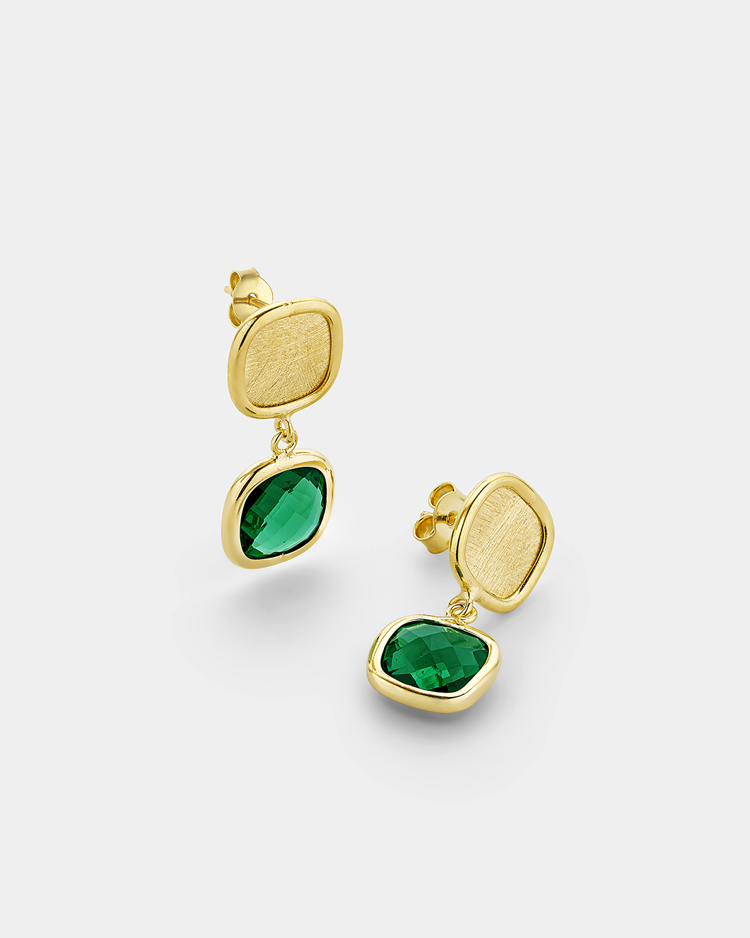 Τα σκουλαρίκια της VOGUE από ασήμι 925, επιχρυσωμένα σε λαμπερή χρυσή απόχρωση, συνδυάζουν τη γοητεία της πράσινης πέτρας με τη διακριτική ματ επιφάνεια του επάνω στοιχείου. Η αντίθεση ανάμεσα στο φως και την υφή δημιουργεί ένα αποτέλεσμα απόλυτης κομψότητας, που αναδεικνύει κάθε εμφάνιση με στυλ και αυτοπεποίθηση. Ένα ζευγάρι που αποπνέει φρεσκάδα, θηλυκότητα και διαχρονική πολυτέλεια.