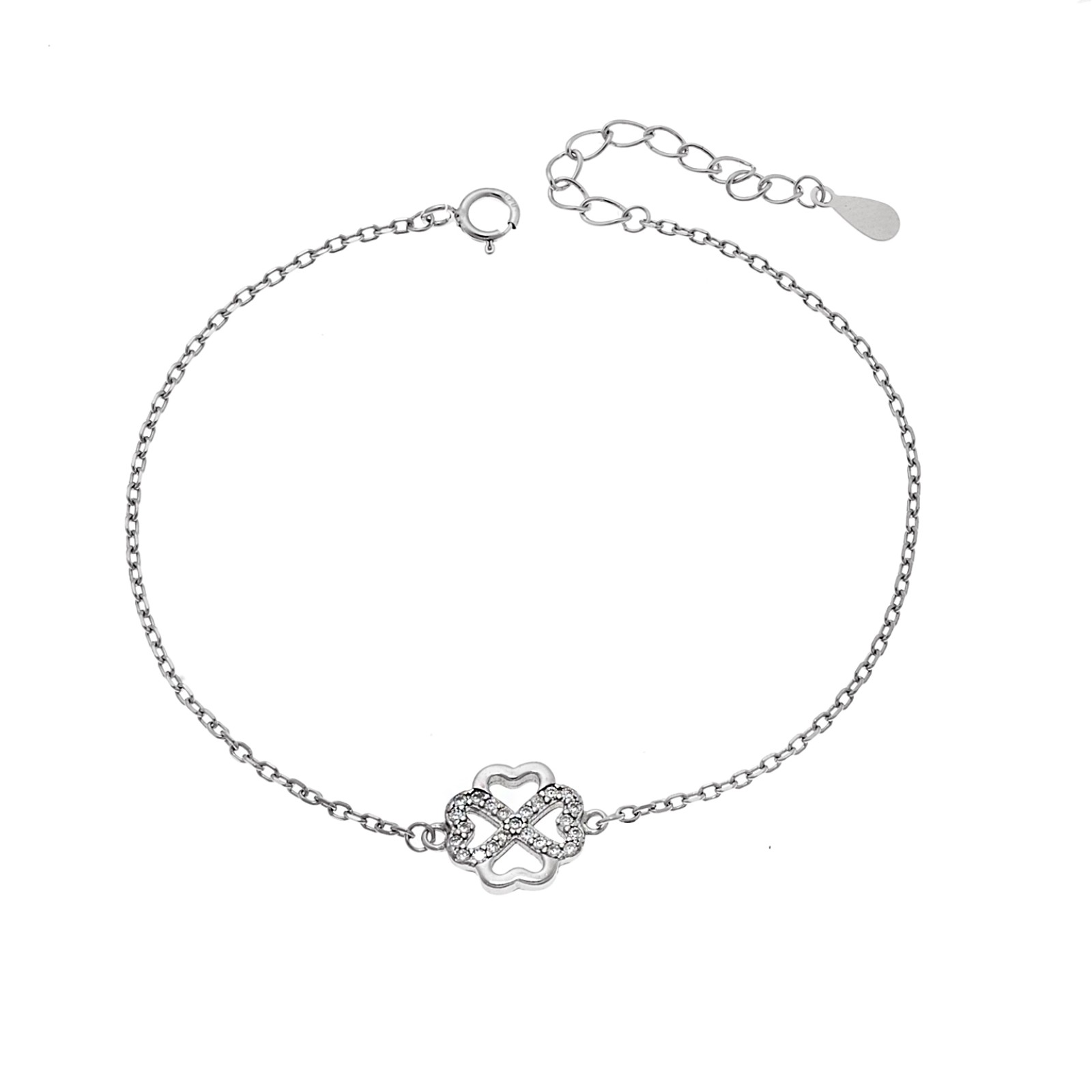 Βραχιόλι με Τριφύλλι & Λευκές Πέτρες – Ασήμι 925