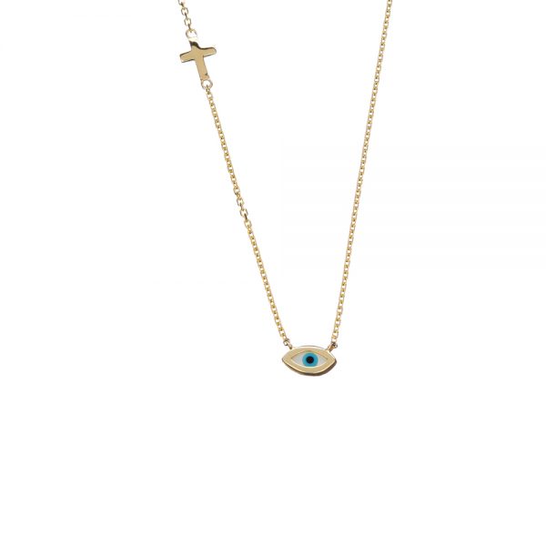 Χρυσό κολιέ με ματάκι και σταυρουδάκι